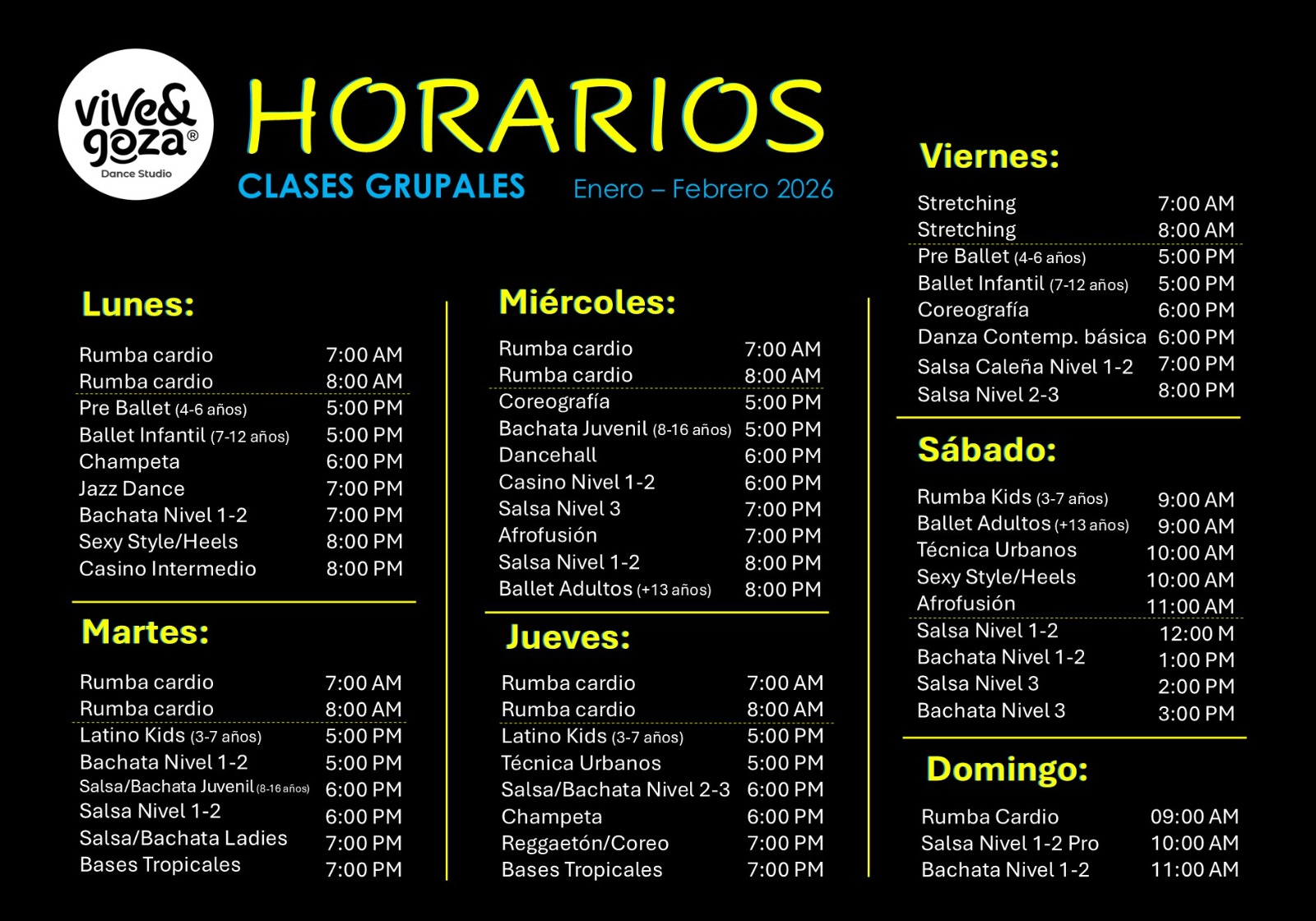 HORARIOS ENERO - FEBRERO DE 2026